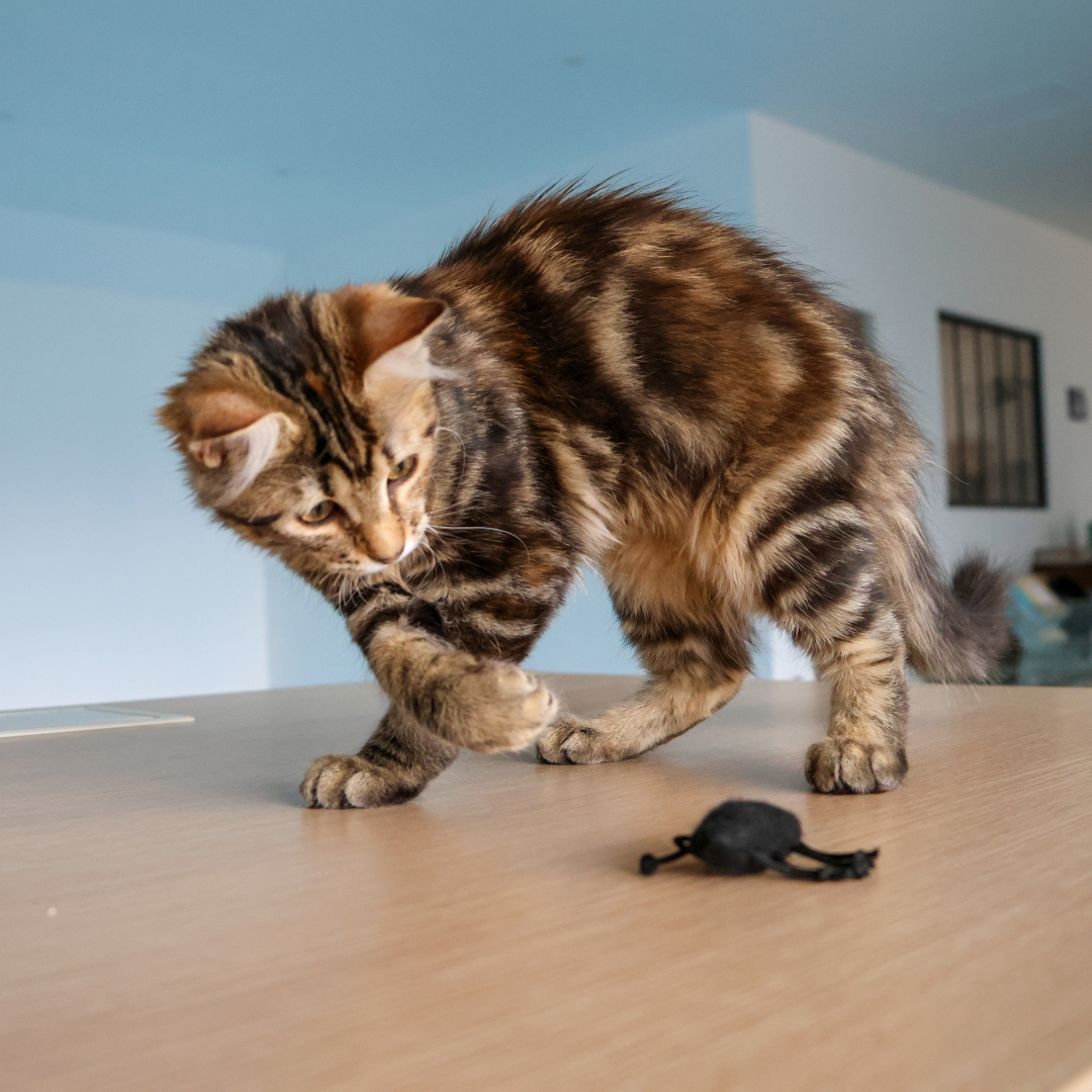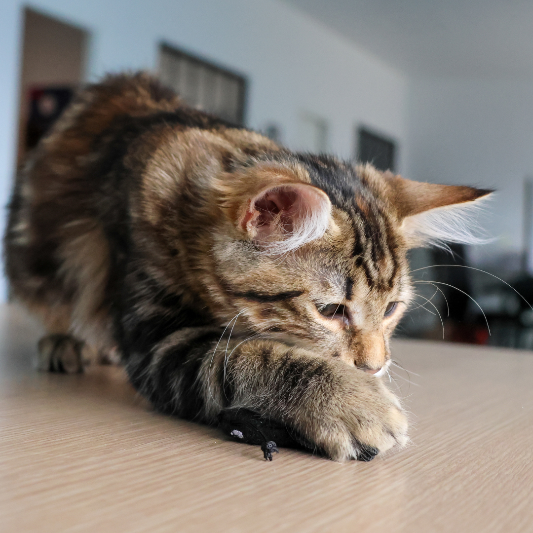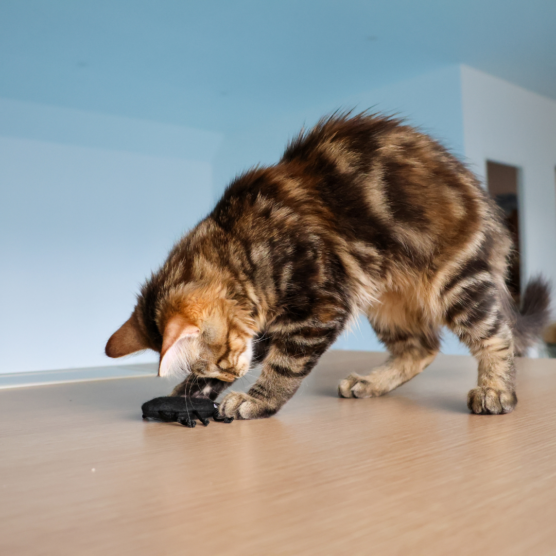 Les chats sont des prédateurs par instinct, et les insectes sont de petites proies parfaites à leurs yeux. Leur mouvement rapide et imprévisible déclenche immédiatement l’envie de chasser. Jouer avec un insecte ou un jouet qui l’imite, comme le criquet en tissu, permet à votre chat de reproduire ce comportement naturel en toute sécurité.